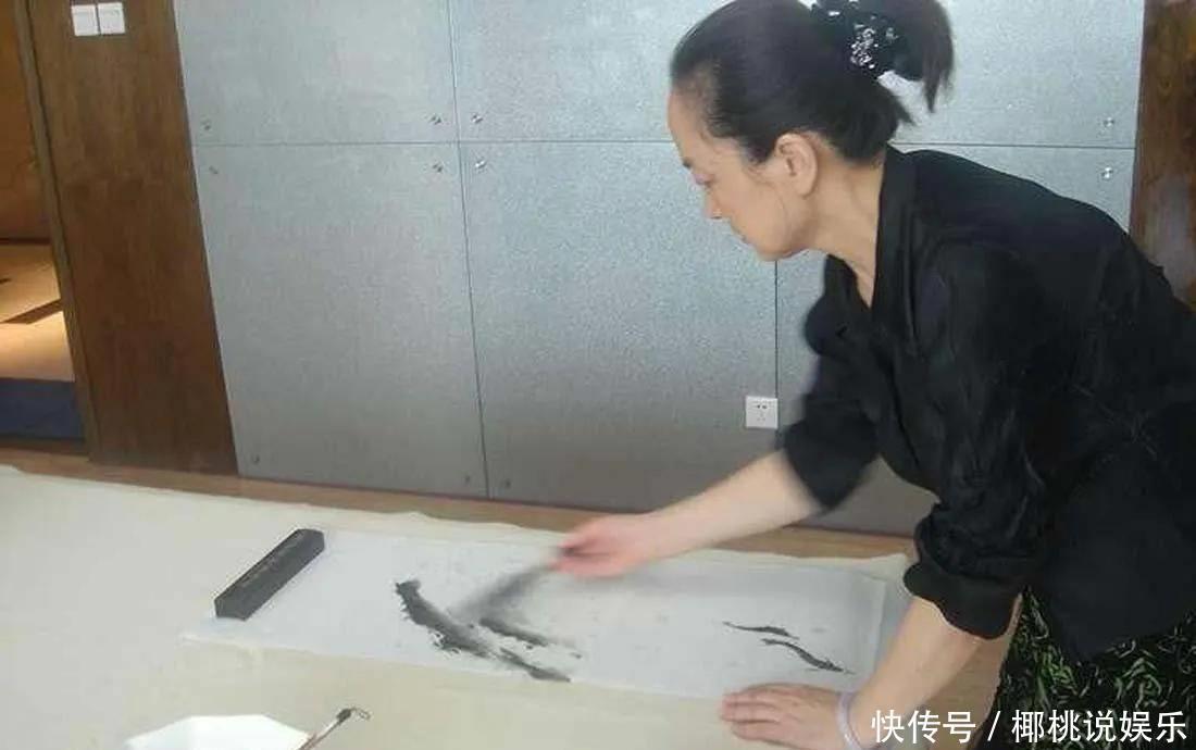 她不拍戏时就在一边练字。